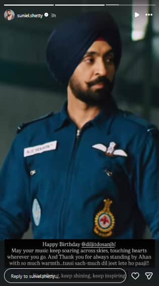 Wishing him all the best for his journey ahead, Suniel Shetty added, “Happy Birthday @diljitdosanjh! May your music keep soaring across skies, touching hearts wherever you go. And Thank you for always standing by Ahan with so much warmth…tussi sach-much dil jeet lete ho paaji!